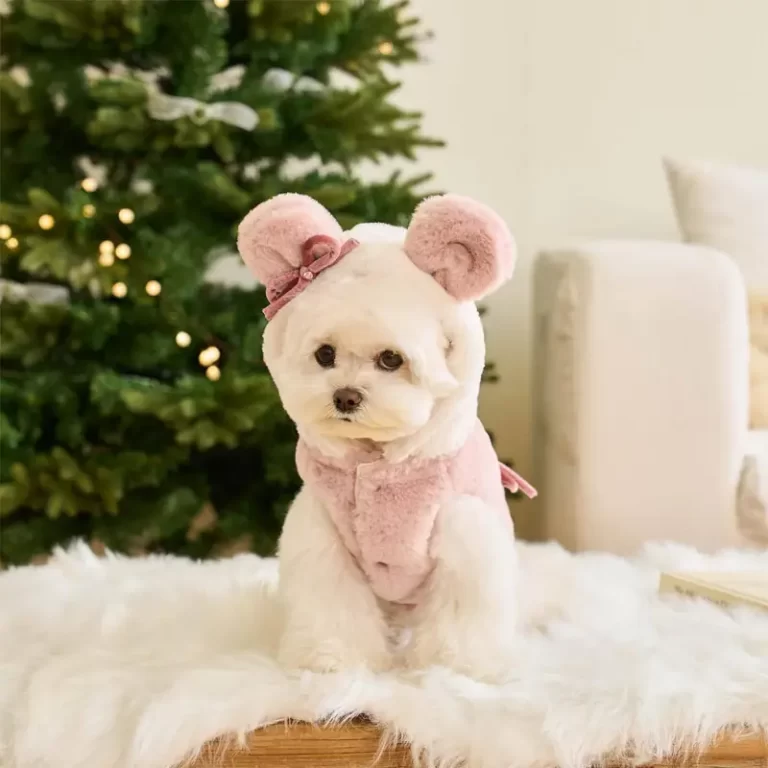 Camperita de piel c/capucha y orejas y colita pompon.Color Rosa.Talle L