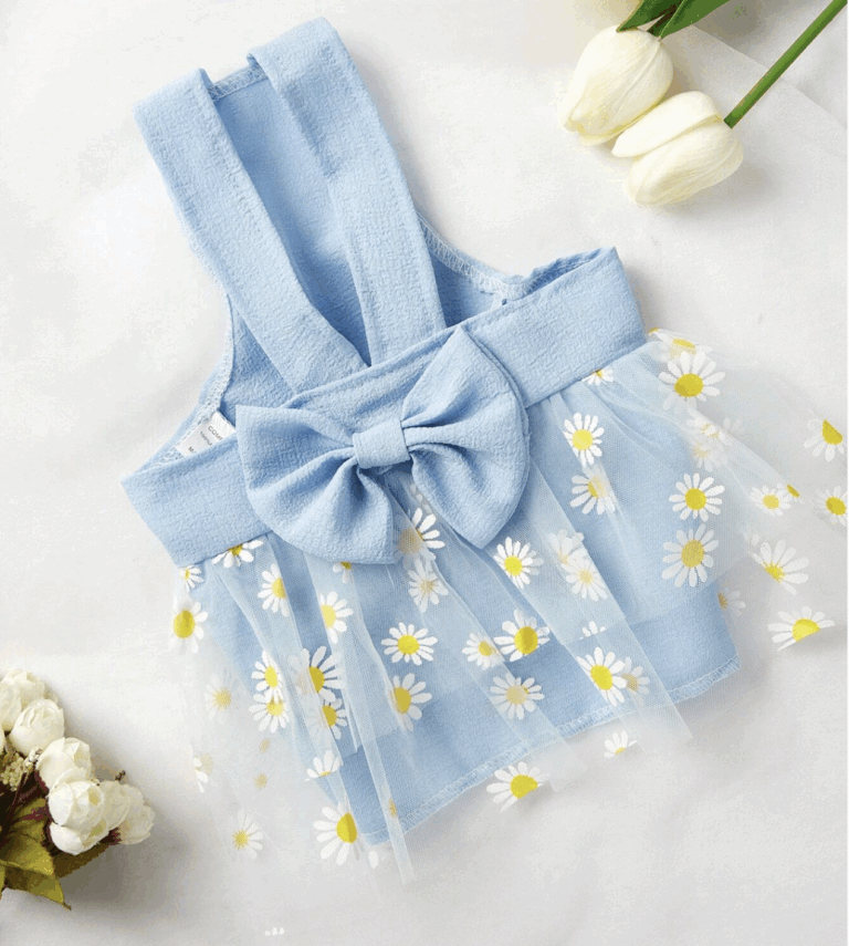 Vestido celestoc/tutu detalles de margaritas. Talle XS
