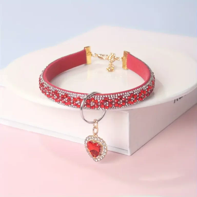 Gargantilla roja de piedras c/dije de corazon. Talle L
