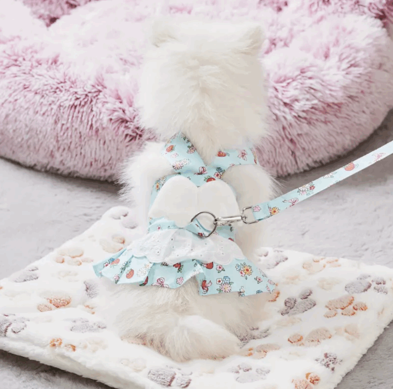 Arnes celeste ,floreado c/voladitos y alitas.Trae correa.Talle XL