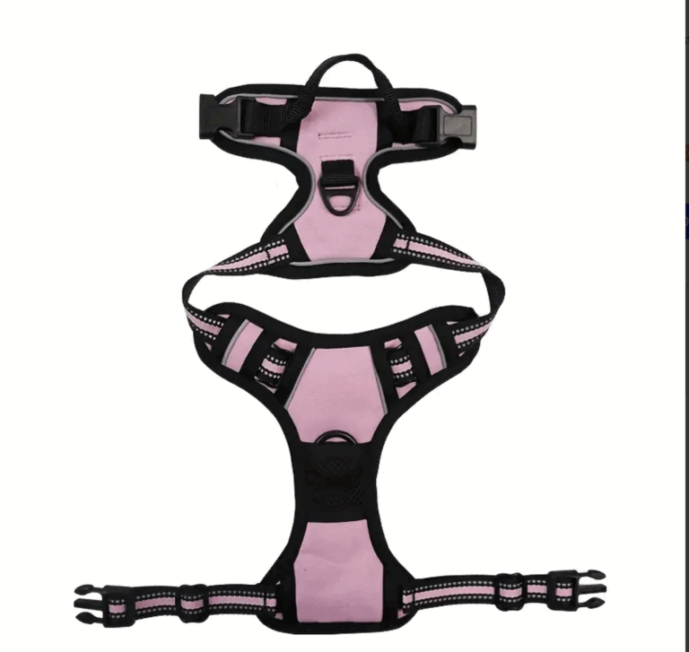 Arnes fucsia p/peludos grandes c/correa.Reflectante. Talle S