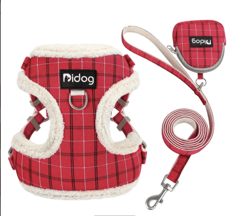 Arnes rojo c/abrigo ,trae correa y bolso de desperdicios. Talle M