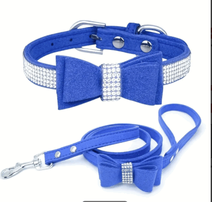Collar azul decorado c/strass.Viene con correa c/moño. Talle M
