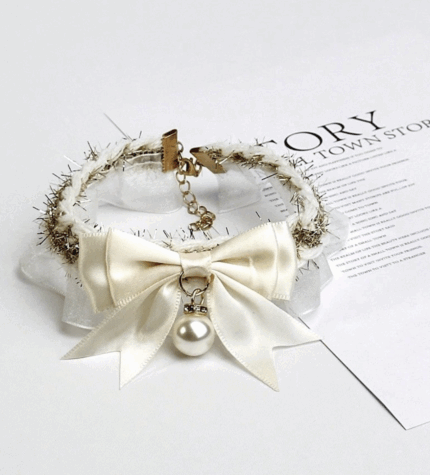 Collar aterciopelado c/moño desmontable y hebilla dorada. Ajustable. Talle M