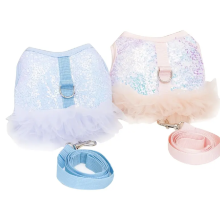Arnes de lentejuelas rosa c/voladito de tul.Trae correa.Talle L