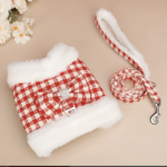 Arnes a cuadros c/interior de plush .Decorado c/moño y piedras.Trae correa.Talle S