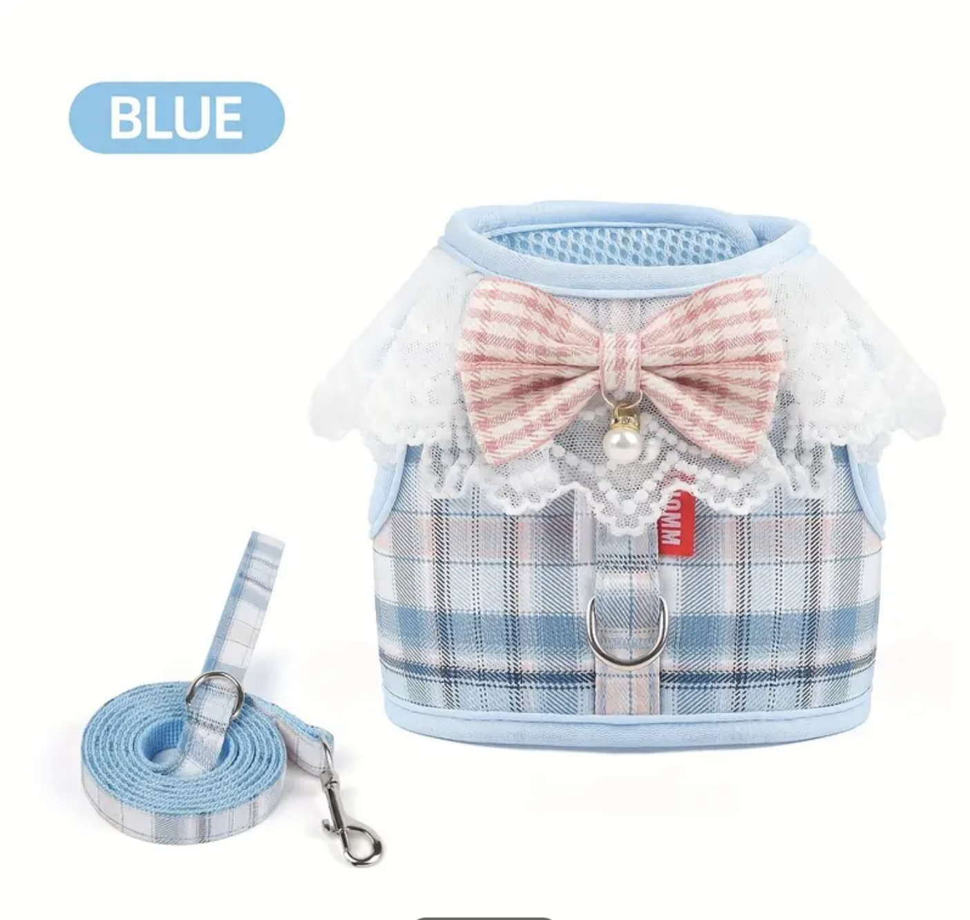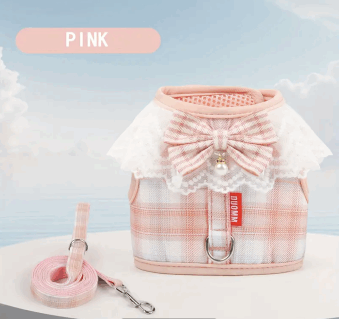 Arnes a cuadros c/puntilla y moño. Trae correa. Talle M y L