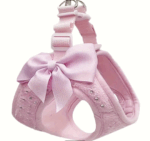 Arnes aterciopelado c/detalles de piedras y moño. Con correa y monedero. Talle S