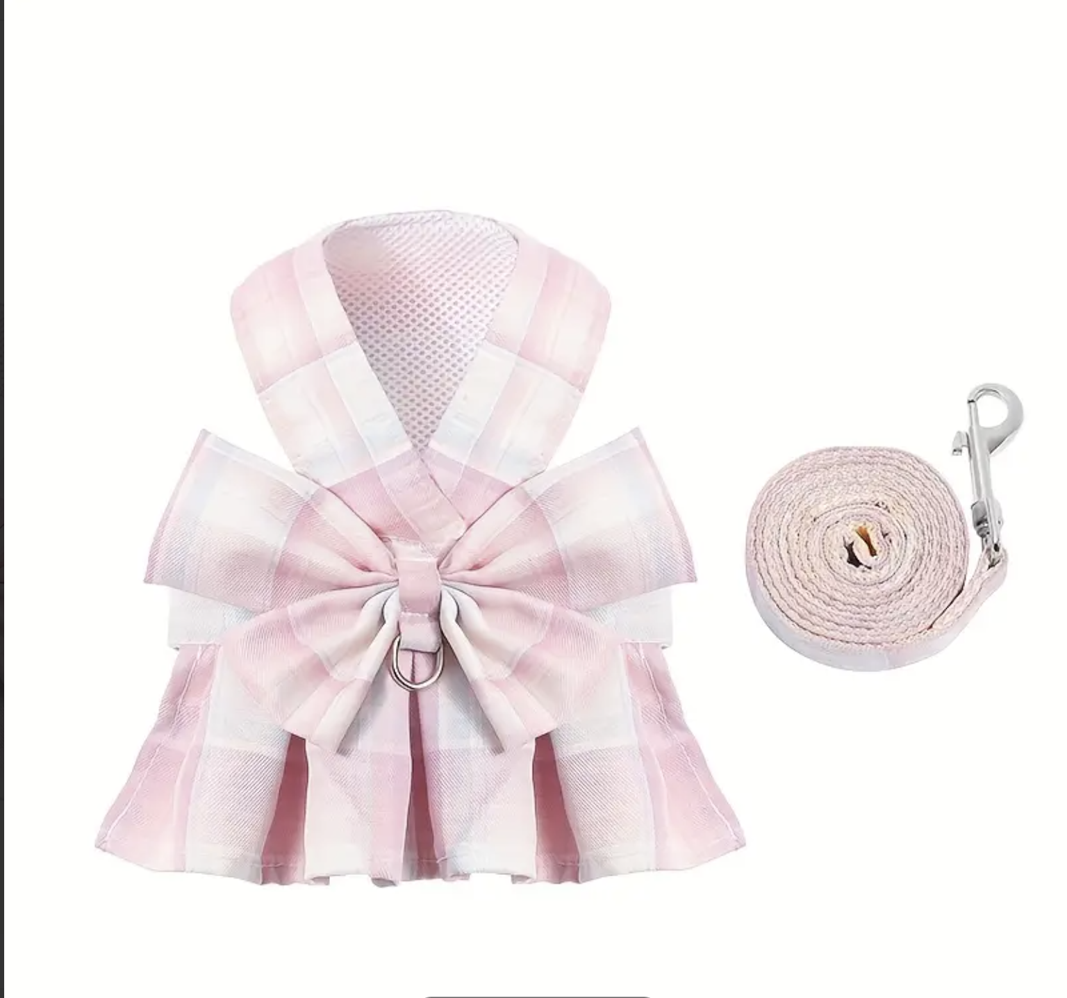 Arnes escoces tonos rosa c/moño y correa. Talle S
