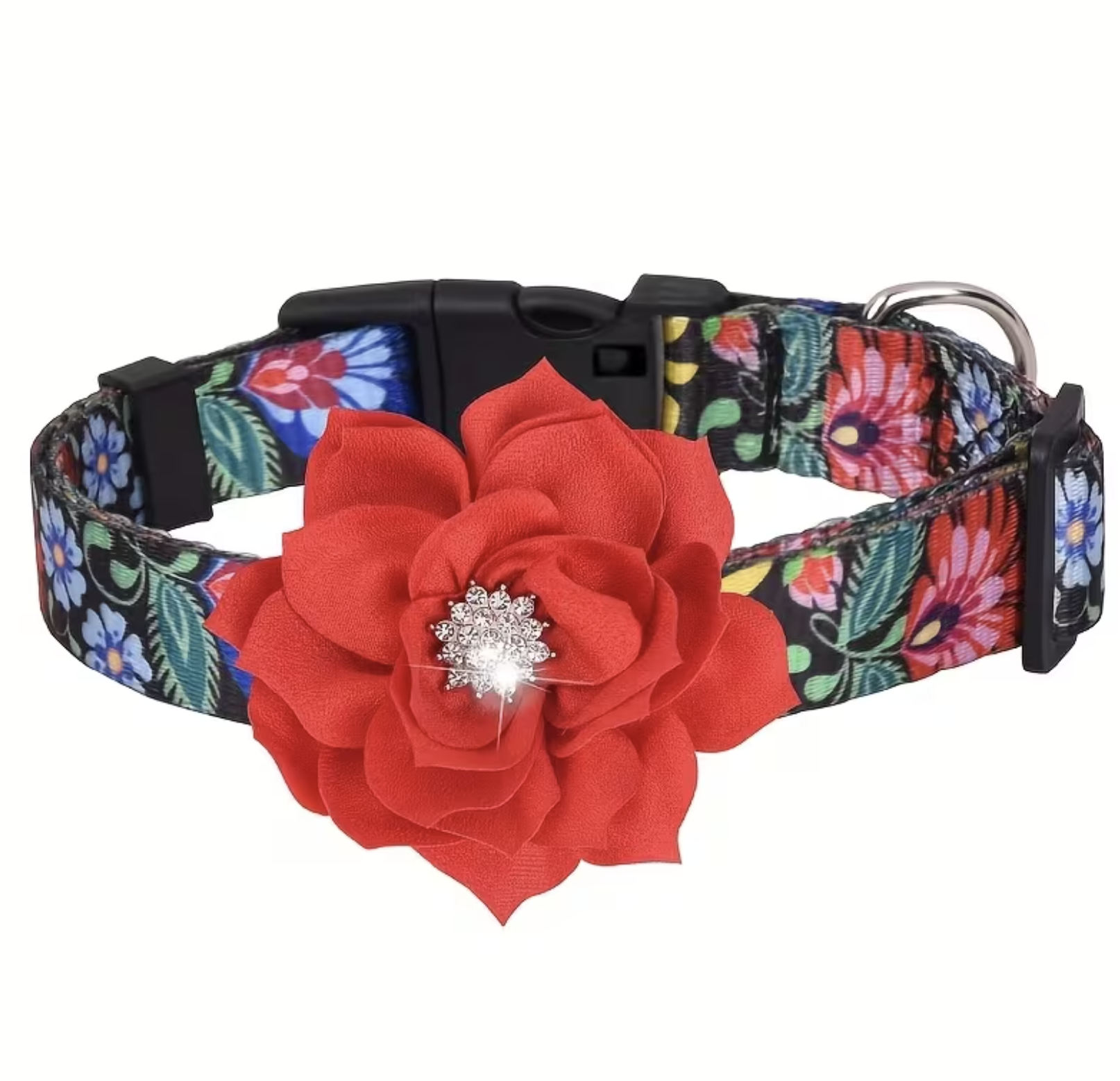 Collar ajustable estampado decorado c/flor y piedras.Talle S