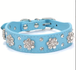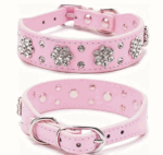 Collar cuero ecologico rosa c/flores de piedras. Talle M