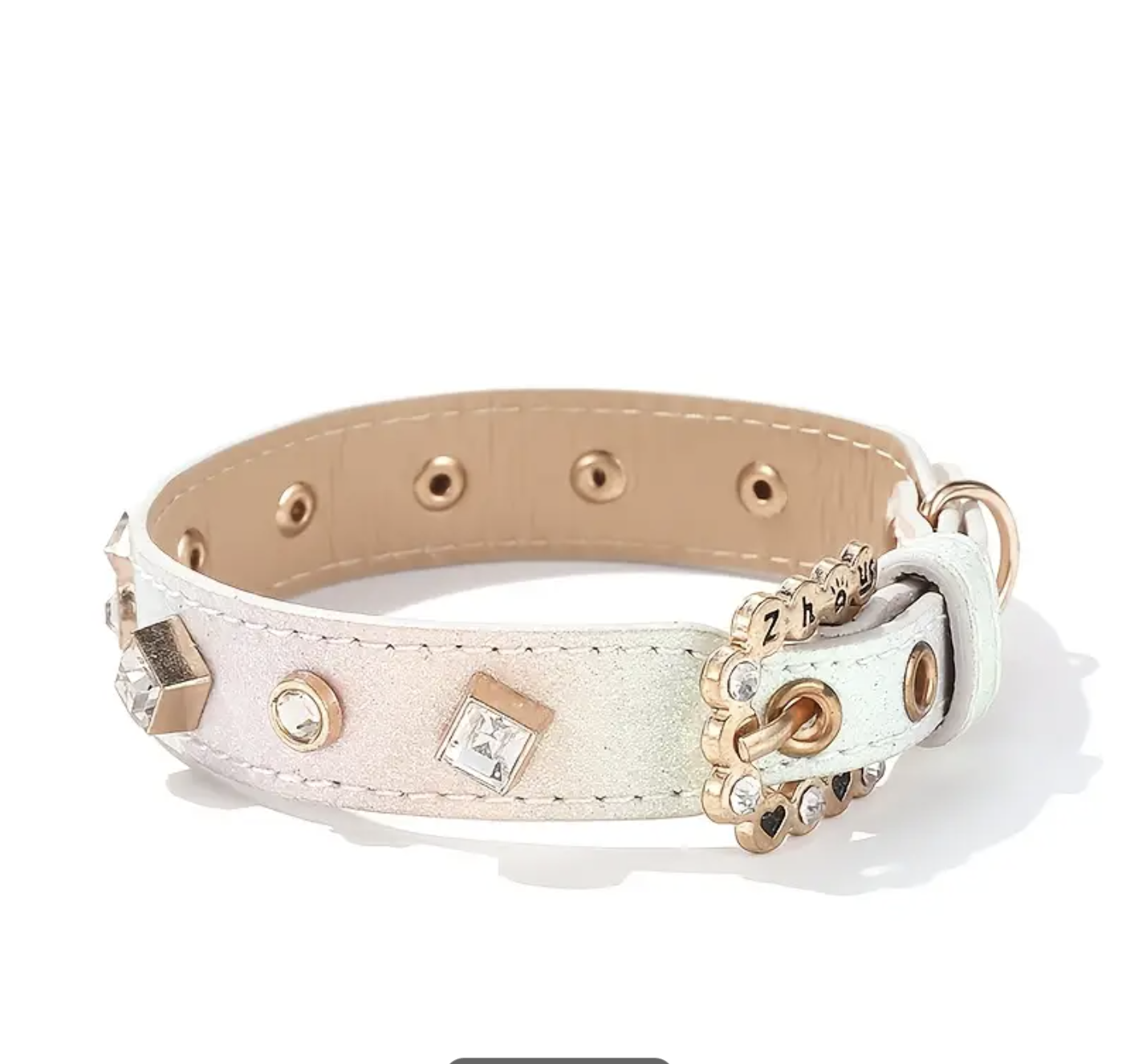 Collar simil cuero brilloso c/apliques de piedras. Talle L