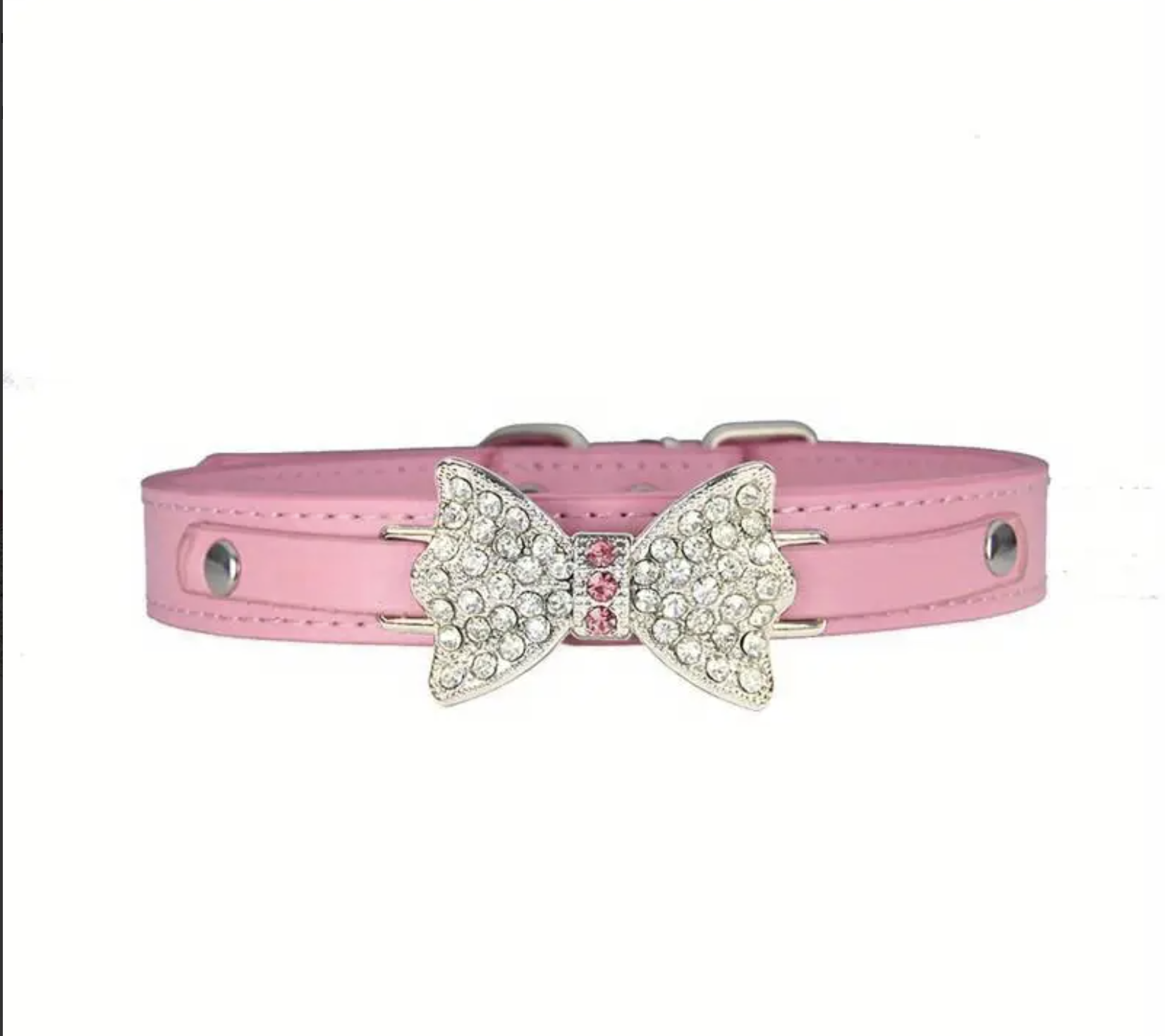 Collar simil cuero c/decoracion moño de brillantes. Talle XS