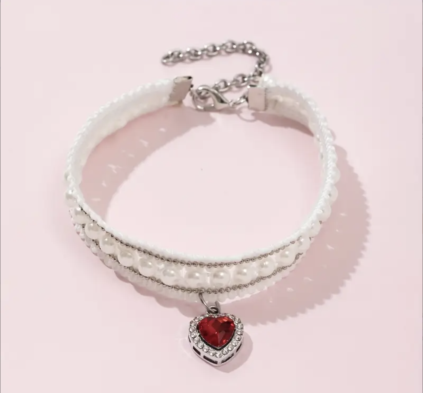 Gargantilla de perlas c/dije de corazon. Talle L