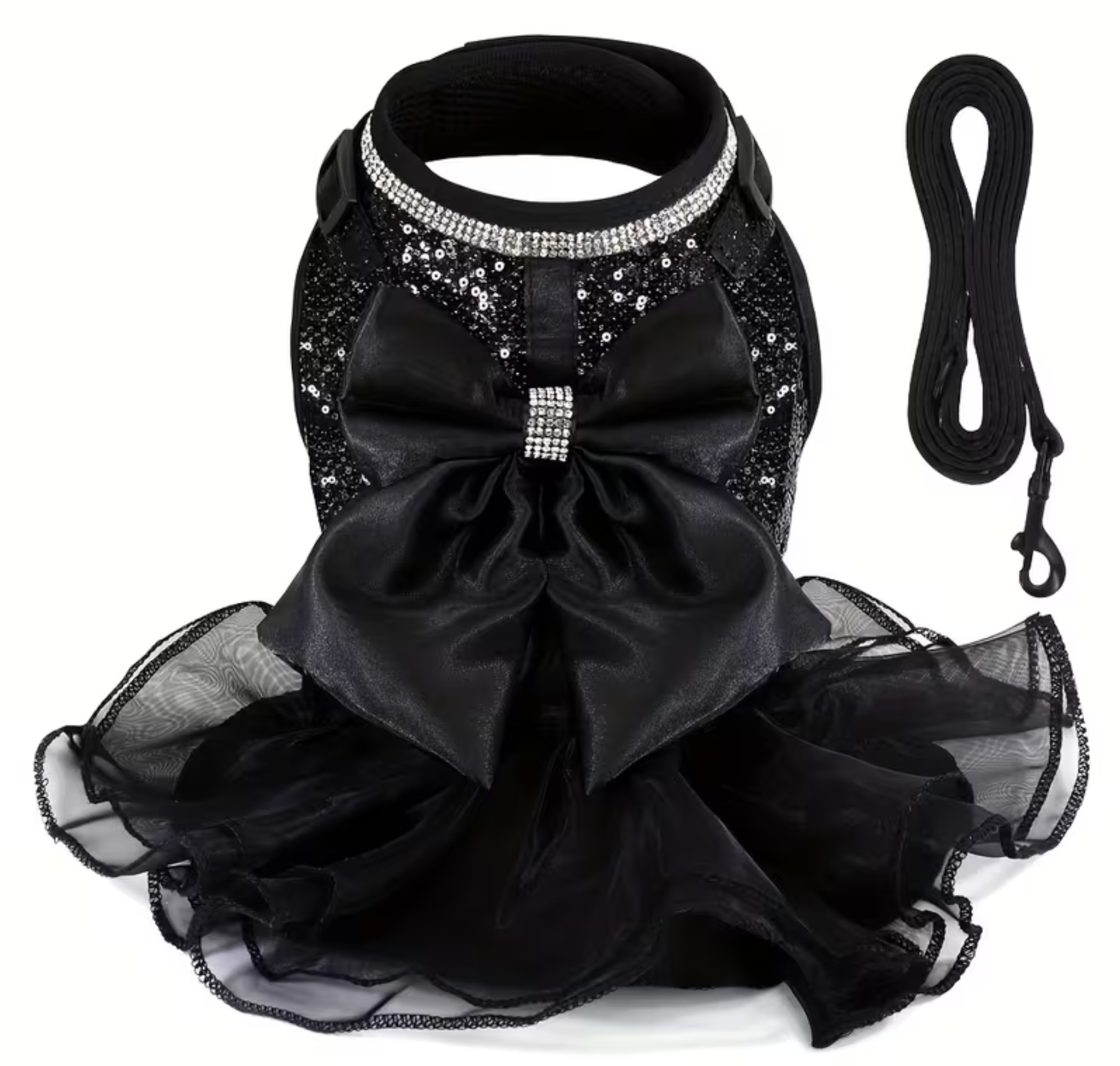 Set de lujo de arnes y correa.Lentejuelas y volados. Talle S