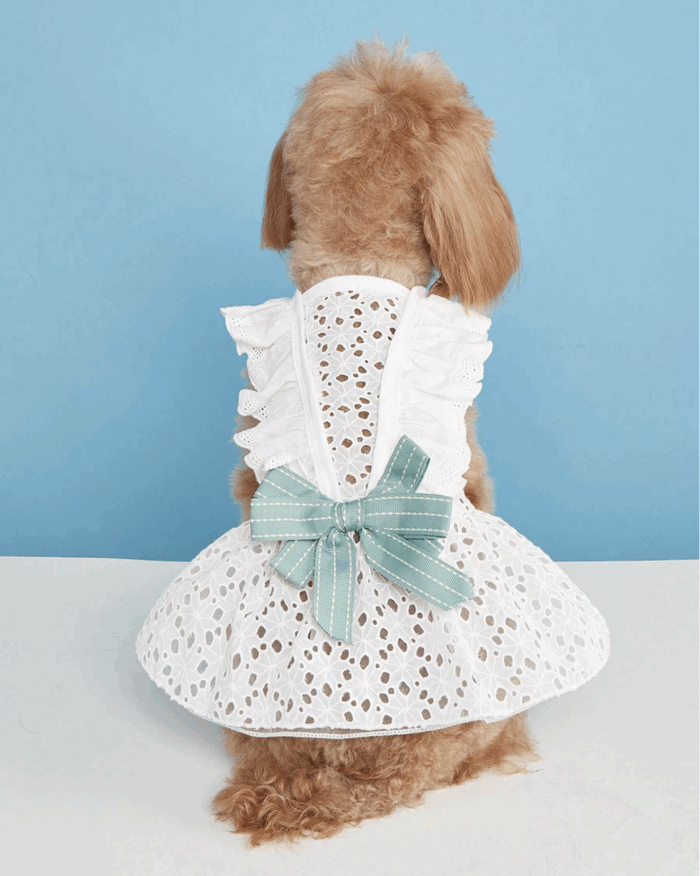 Vestido blanco de broderie c/acento moño verde. Talle L y 2XL