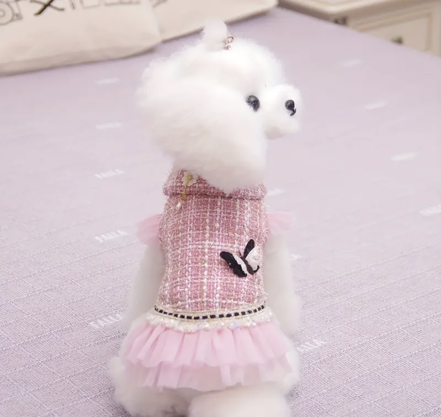 Vestido c/detalles de mariposa y ribetes de encaje.Talle L