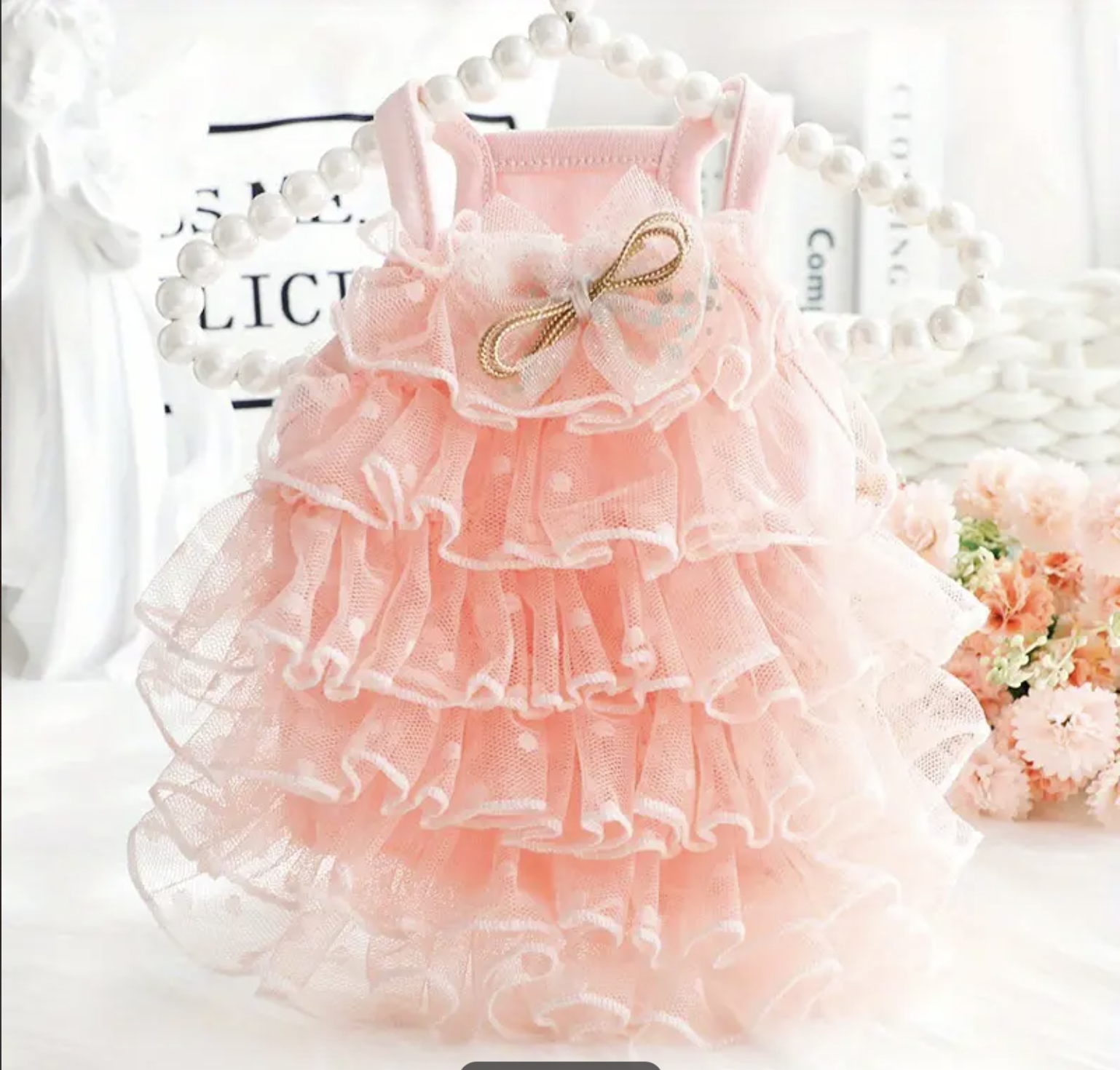 Vestido color salmon,suelto c/voladitos de tul. Para peluditos pequeños .Talle L