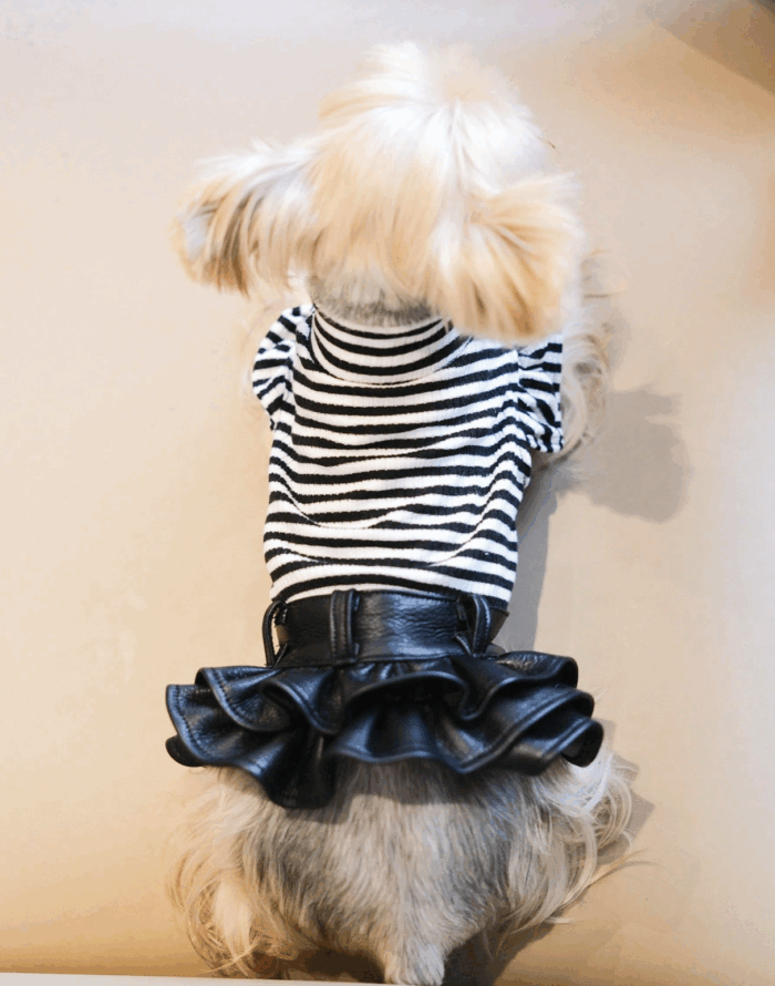 Vestido de algodon rayado c/pollera simil cuero. Talle M y 2XL