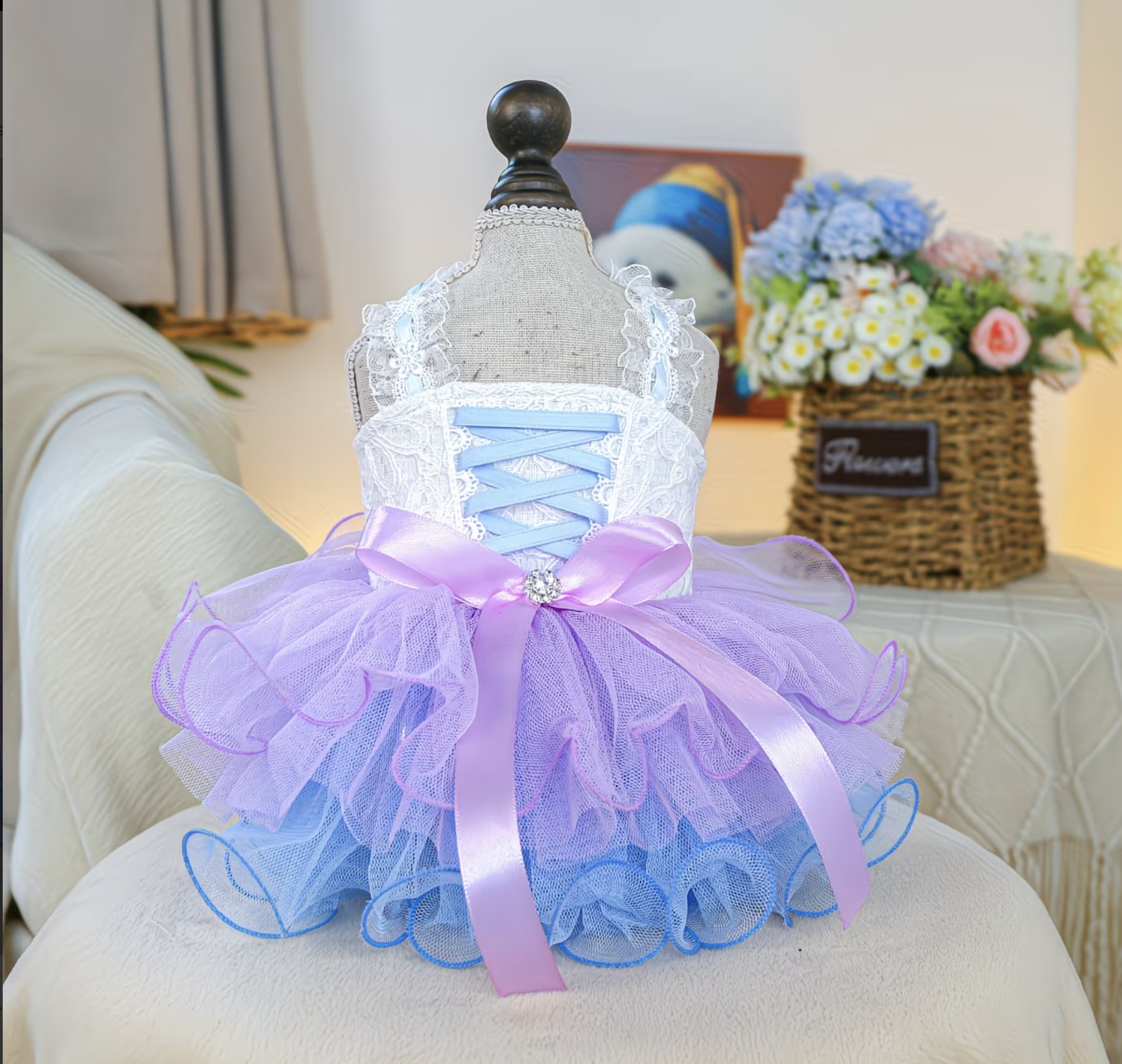 Vestido de encaje c/tutu y decoracion de moño.Talle S